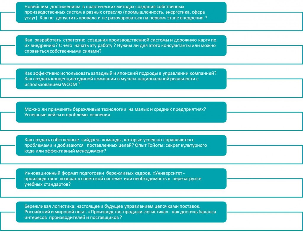 • Мы пригласим Вас в «Кайдзен-парк« — парк интерактивных игр и тренажеров, где каждый участник может продемонстрировать свои знания инструментов TPS (эффективный VSM, 5S, быстрая переналадка, SMED, вытягивающее производство, эффективный склад и качество в процессе). Для тех, кто еще только делает первые шаги в освоении японских технологий управления — это возможность быстро понять как работают эти инструменты на практике и какие проблемы с их помощью можно решить в своей компании.