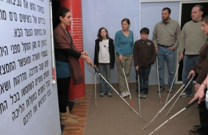 «Прошу вас по очереди проходить в соседнее помещение», — говорит собравшимся на тренинг строгая женщина в очках и раздает трости для слепых. Накинув ремешок палки на запястье, я нащупываю пальцами стену за плотной черной шторой и только после этого вхожу в темноту.